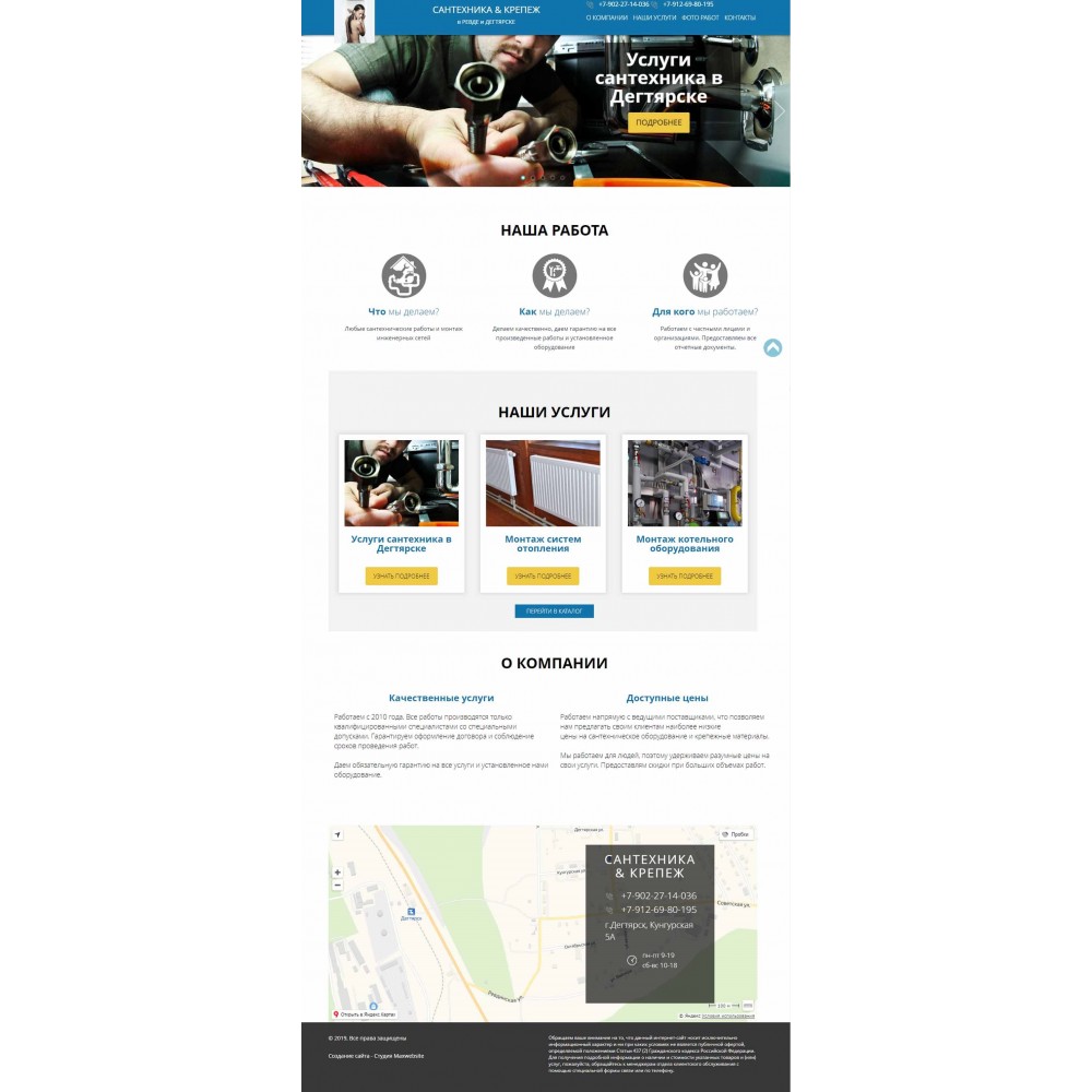 Бизнес-сайт по сантехническим услугам в г.Дегтярске от веб-студии Максвебсайт г. Каменск-Уральский