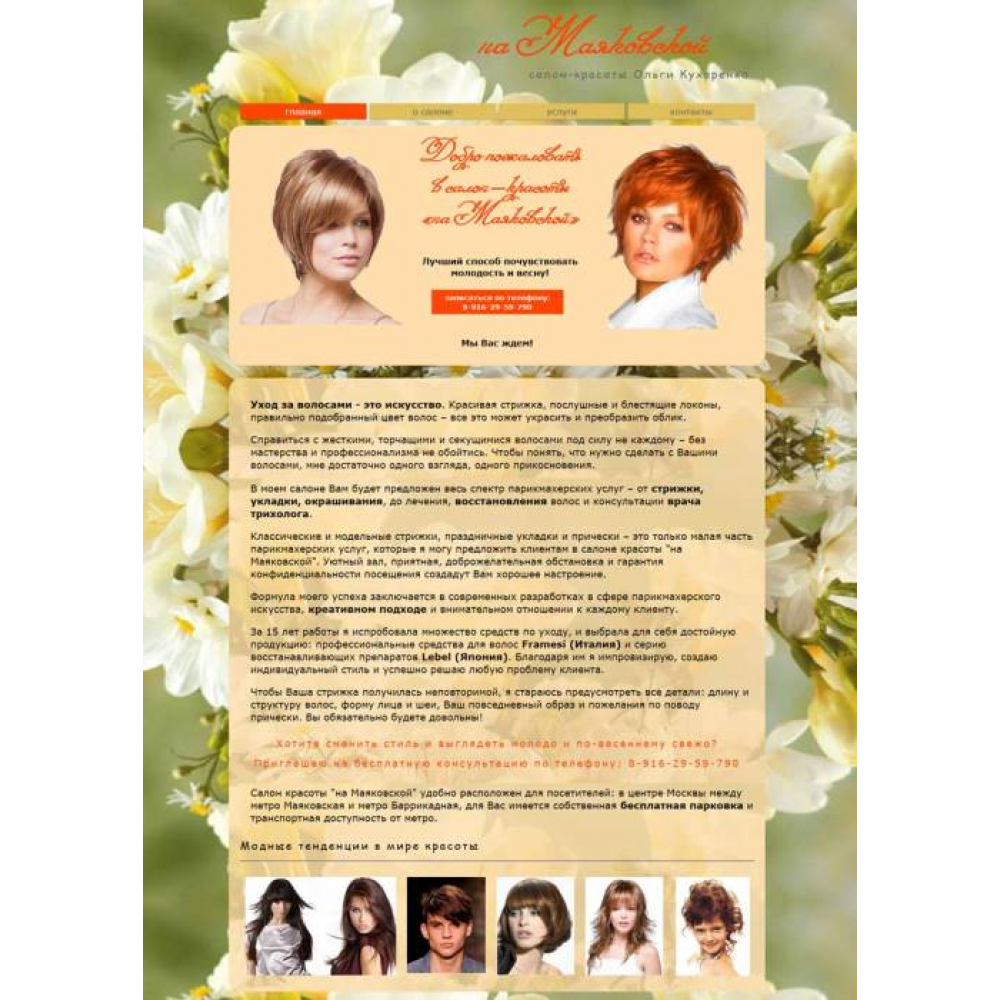 Сайт-визитка Салона красоты Ольги Кухаренко г.Москва от веб-студии Максвебсайт г. Каменск-Уральский